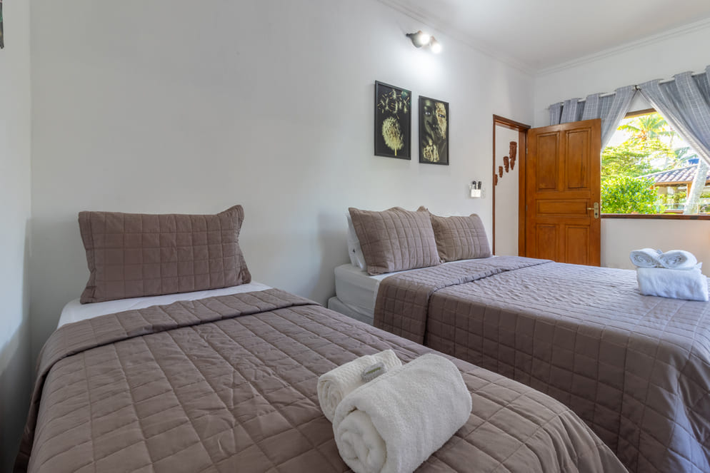 Até 6 anos são nossas convidadas (sem custo!), utilizando as camas já existentes. A partir de 7 anos, passam a contar como hóspedes grandinhos. Não fornecemos colchão extra ou berço.