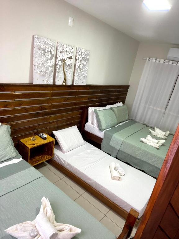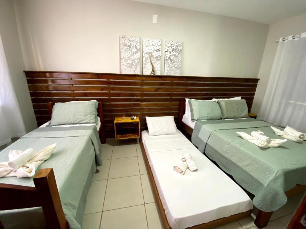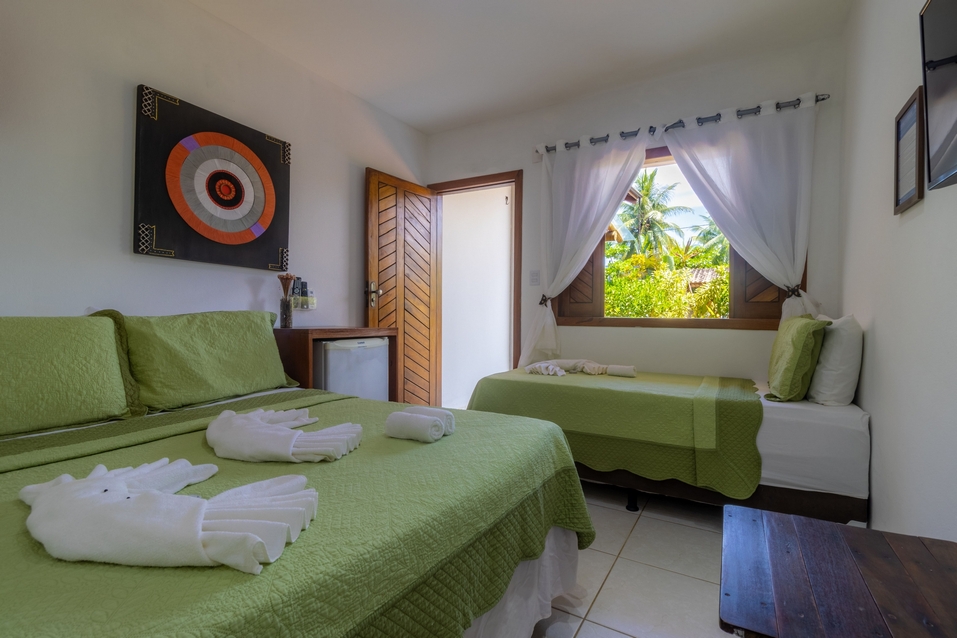 1 cama de casal padrão + 1 cama de solteiro + 1 bicama (embaixo da cama de casal – prática e funcional!)