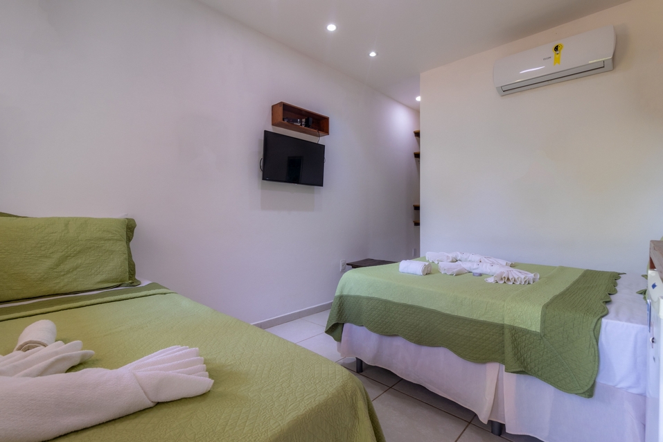 Além disso, conta com ar-condicionado, Smart TV com canais a cabo e banheiro privativo com chuveiro — tudo pensado para tornar sua estadia ainda mais completa.