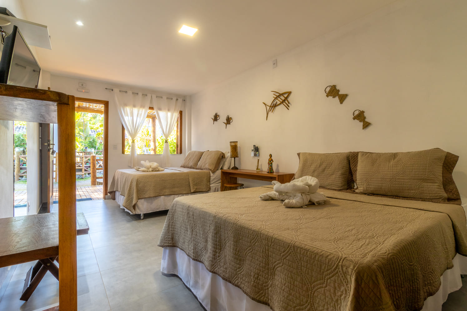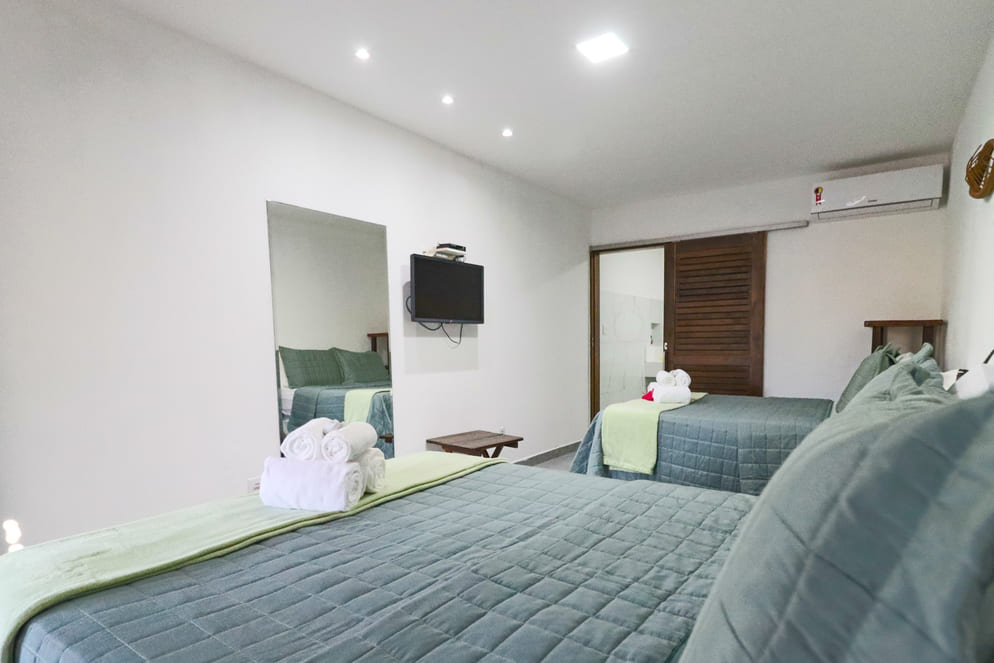 Com ar-condicionado, Smart TV com canais a cabo, frigobar e banheiro privativo com chuveiro, a suíte reúne todos os elementos essenciais para que a sua estadia seja leve e tranquila.